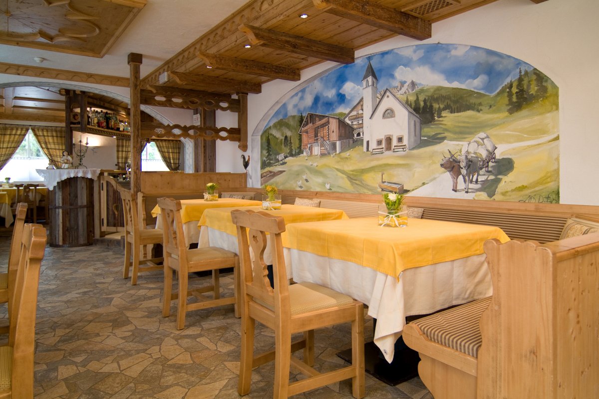 Traditional Val di Fassa cuisine features simple dishes that are full of Ladino essence. The restaurant of the Madonnina Spa & Family Hotel offers a variety of regional and national dishes, an abundant vegetable buffet, and a children’s single-course menu so that we can serve them first and they can go back to playing with the kids entertainers in the Kids’ Club “La Baita dei Ciuffetti”.